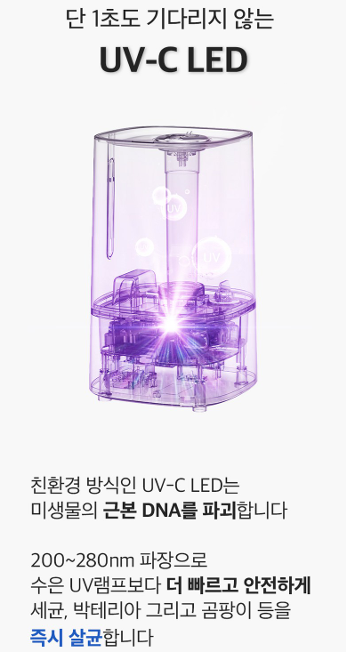 또한, UV 살균 가습 기능 덕분에 항상 깨끗한 수증기를 만들어줘서, 가습기 사용 시 세균, 박테리아로부터 안전하다고 하는데 눈에 보이는 것은 아니지만 없는 것보다 맘이 편한 게 사실입니다.