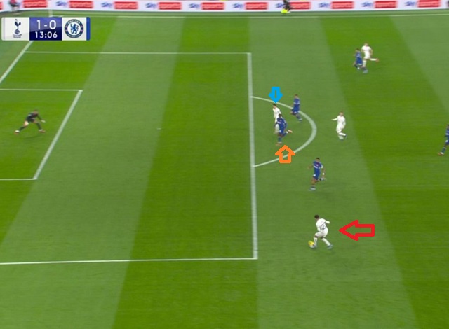 배식: 빨간색 화살표 토트넘 선수가 공을 패스하는 순간!! 에 첼시의 최종 수비수(주황색 화살표)보다 쏘니(파란색 화살표)가 동일선상에서 골대쪽으로 선을 먼저 넘어가 있으면 안돼!